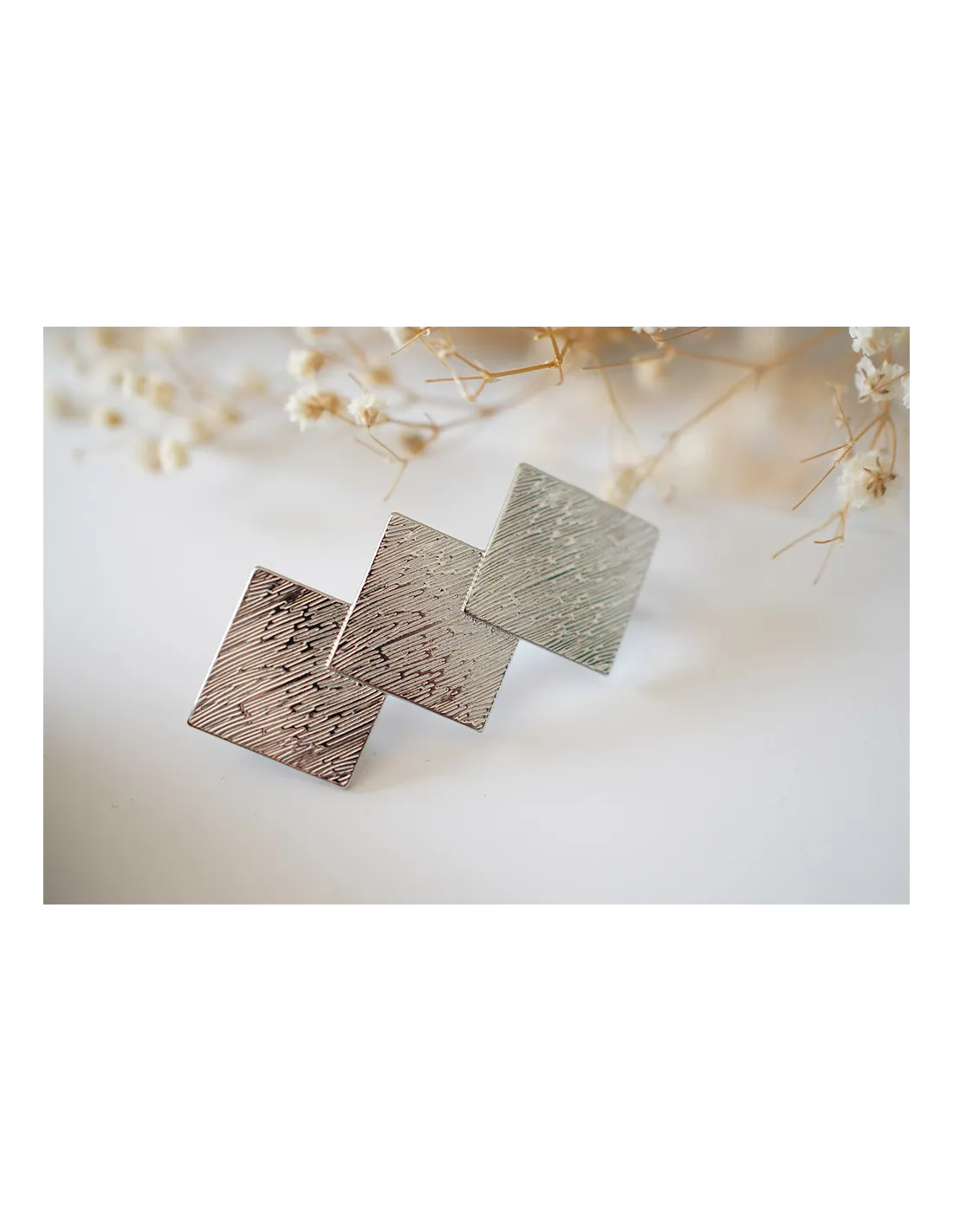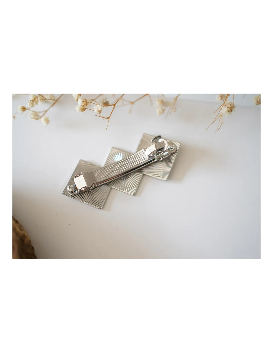 Détails de la barrette losanges argentés Colette