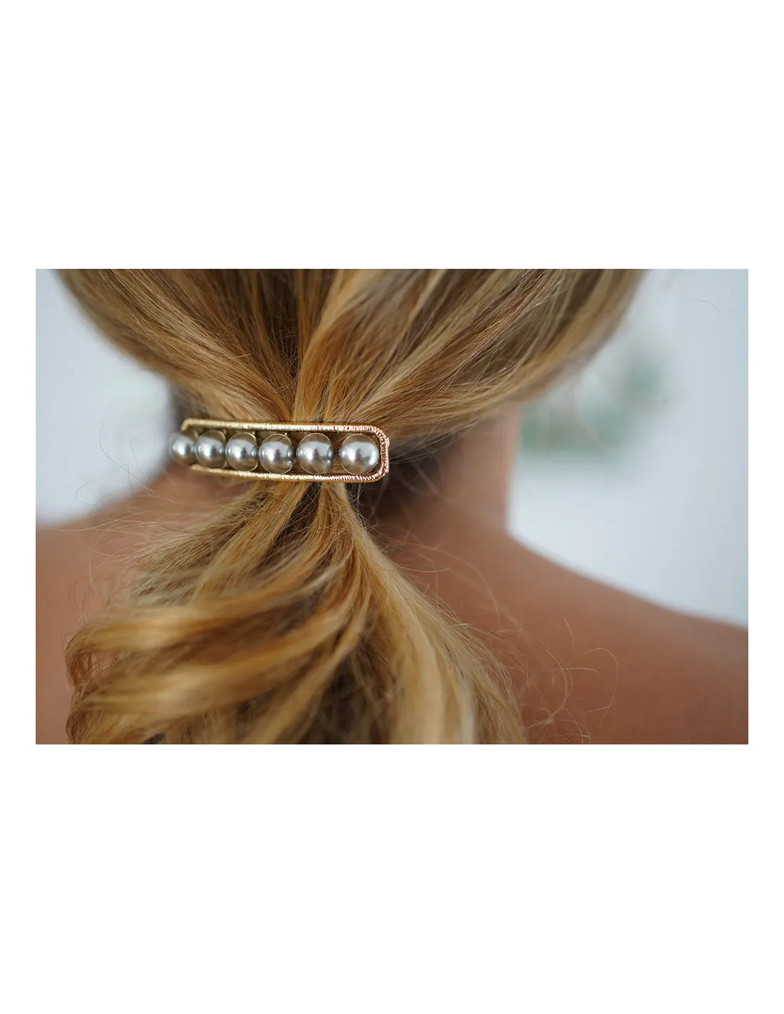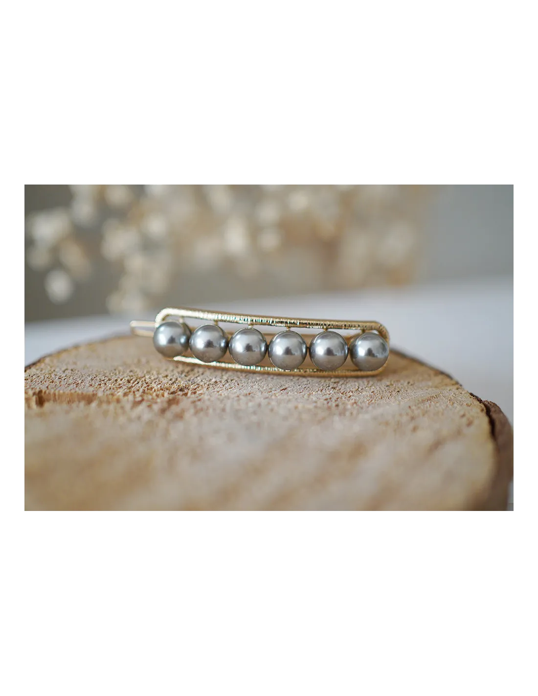 Barrette Rachelle Dorée Perles Grises