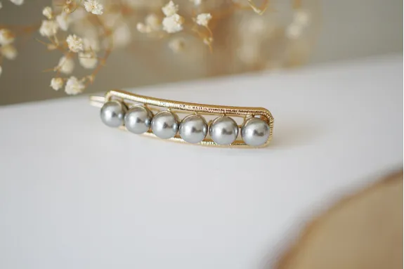 Cette sublime barrette sera la touche glamour pour toutes vos plus belles coiffures. Vous pouvez vous amuser à habiller vos cheveux avec ce modèle qui ajoutera une touche d'élégance. Ses délicates perles grises illumineront votre chevelure.