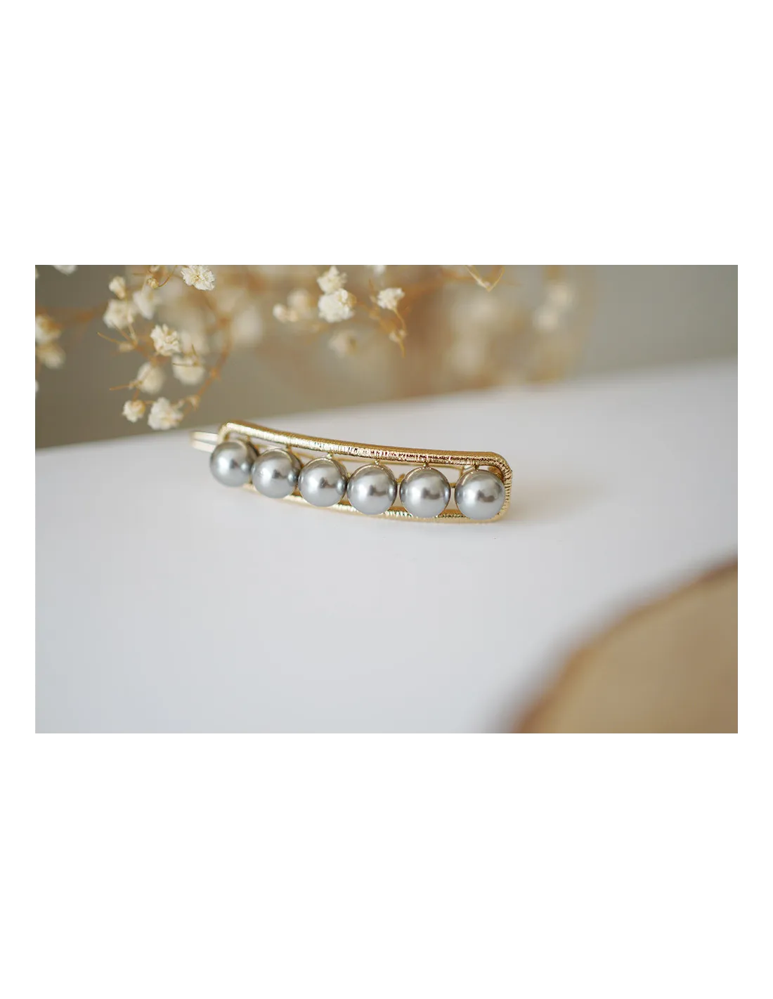 Détails de la barrette dorée perles grises Rachelle :