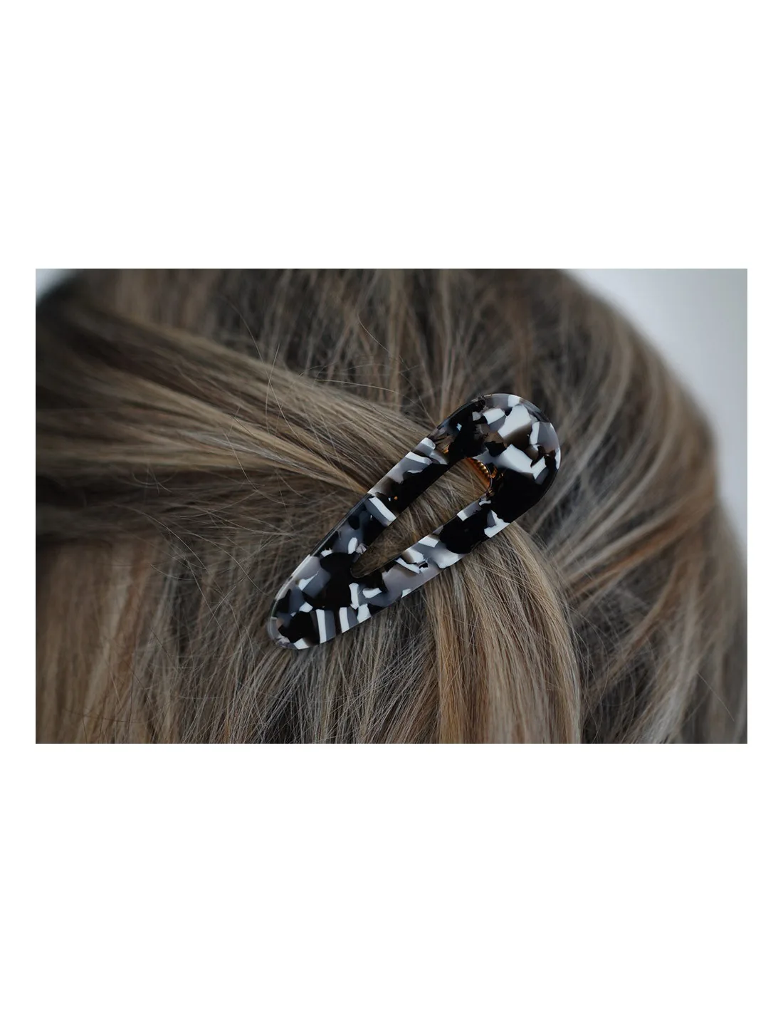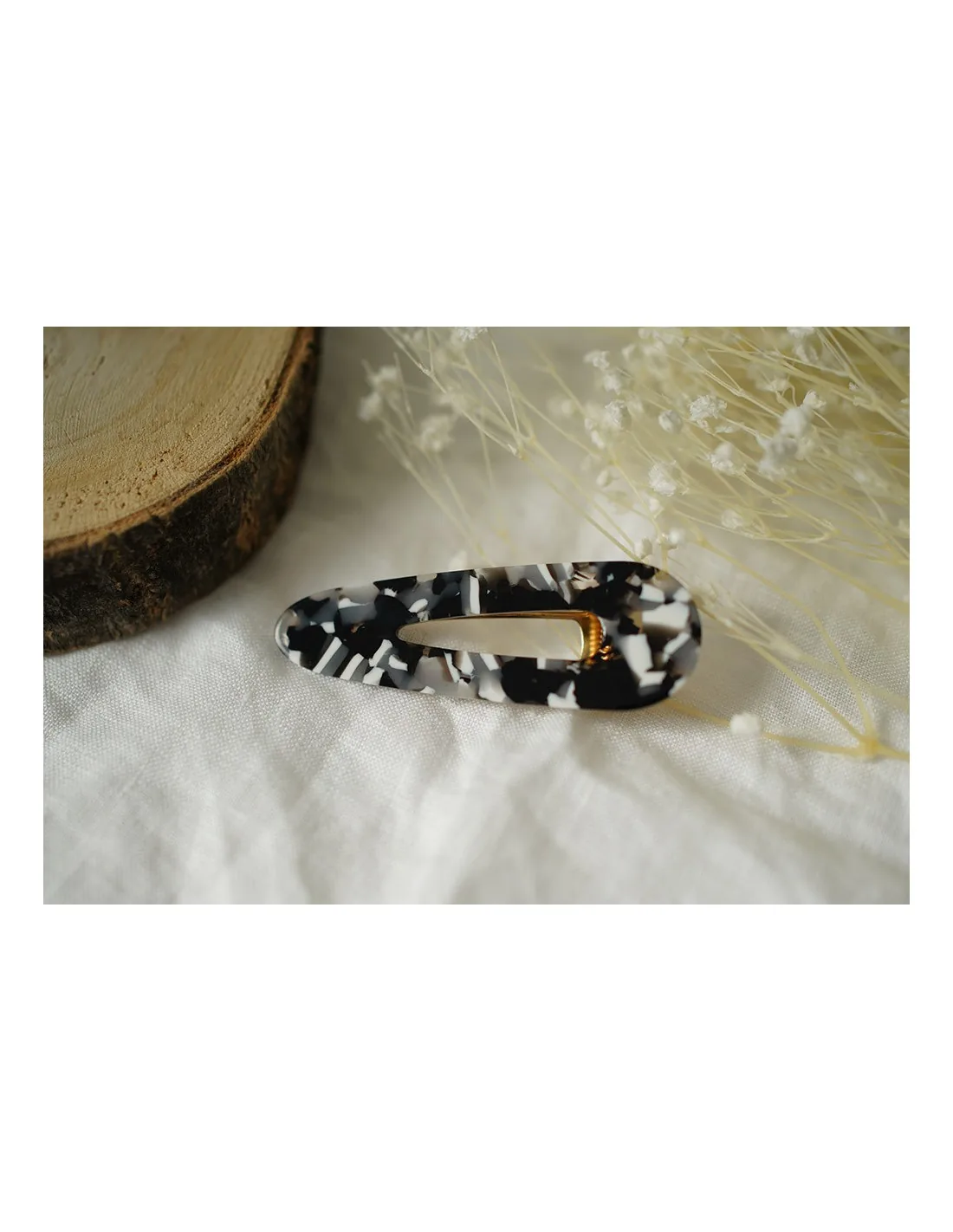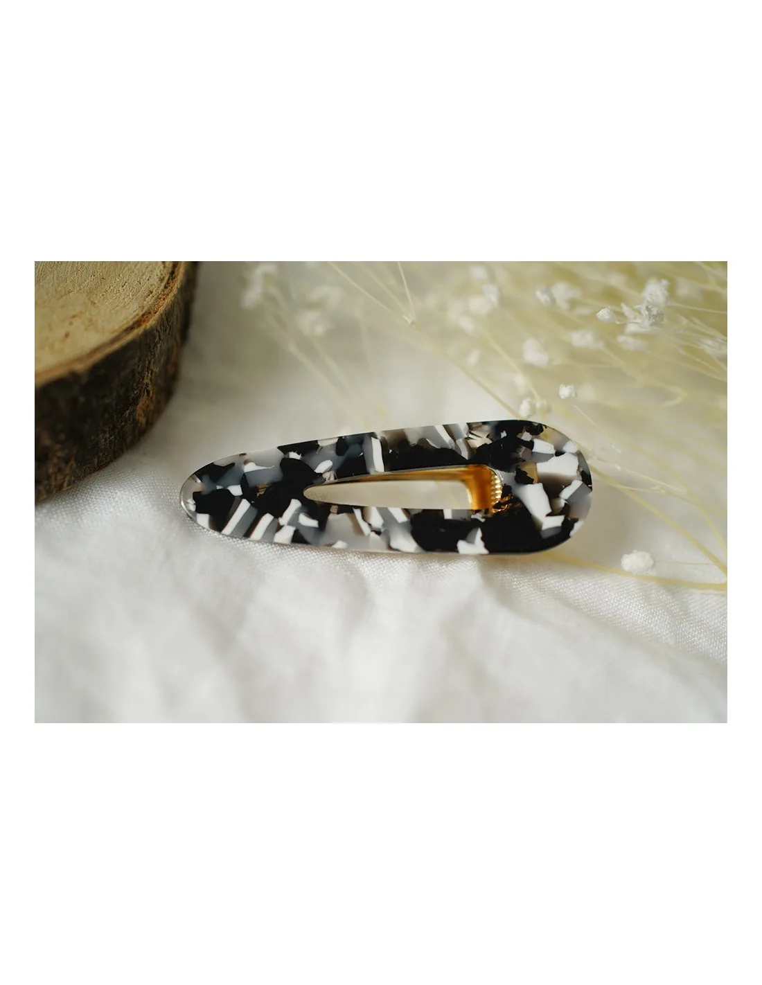 Détails de la barrette pince Charline motif quartz noir et blanc