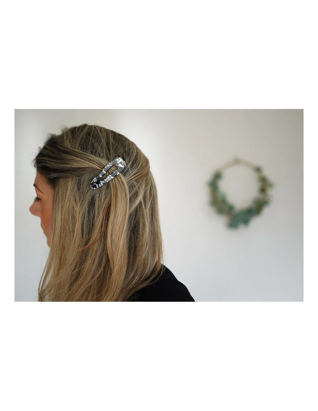 Le modèle de barrette Charline se décline dans d'autres coloris sur notre eshop quartz rose, quartz noir ou encore écaille de tortue marron et noir.