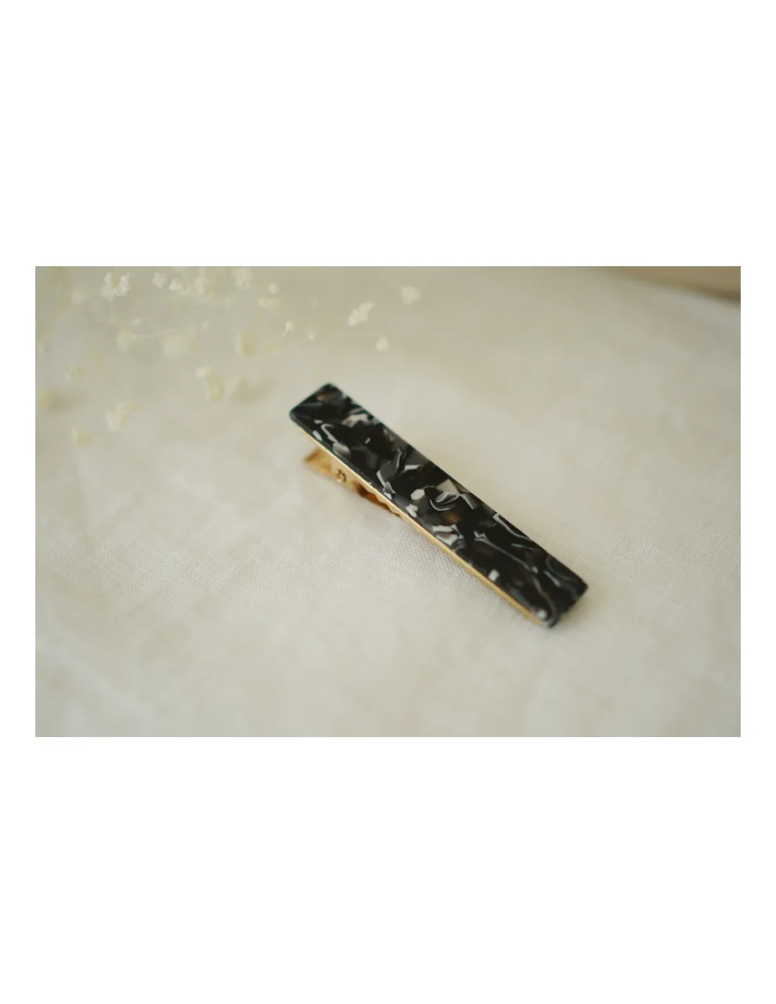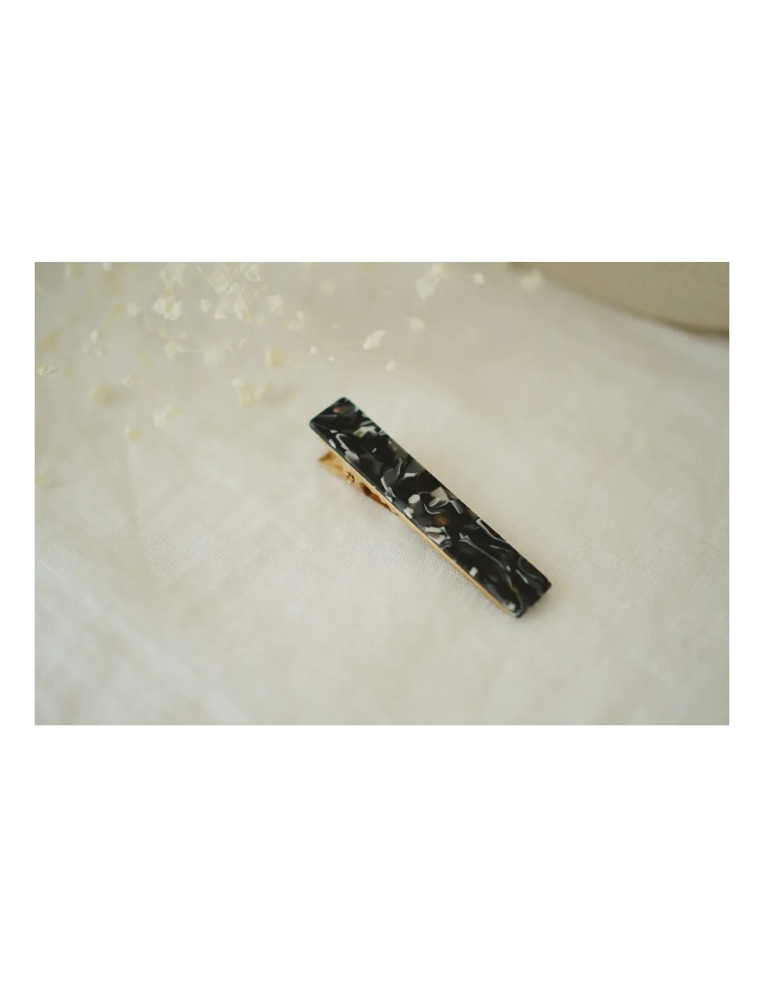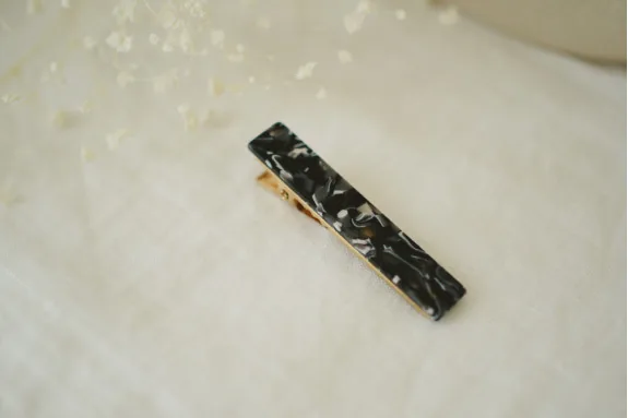 En plus du quartz noir et blanc, la barrette Mahalia est également disponible dans d'autres teintes sur notre boutique en ligne, offrant ainsi un choix varié pour s'adapter à tous les styles et préférences.