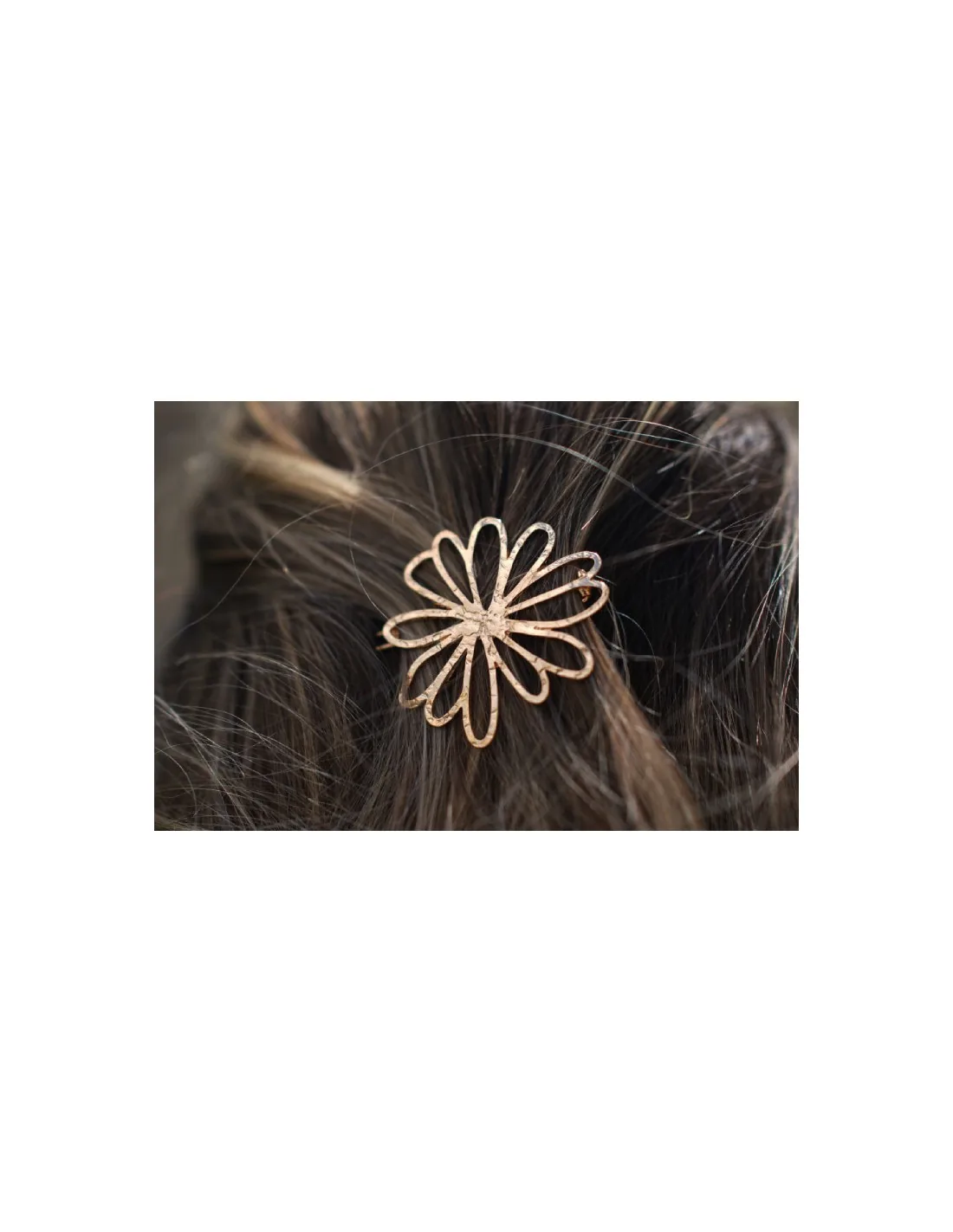 Élégante et poétique, la barrette Aurora Fleur Dorée séduit par son design raffiné en forme de fleur délicatement ajourée.