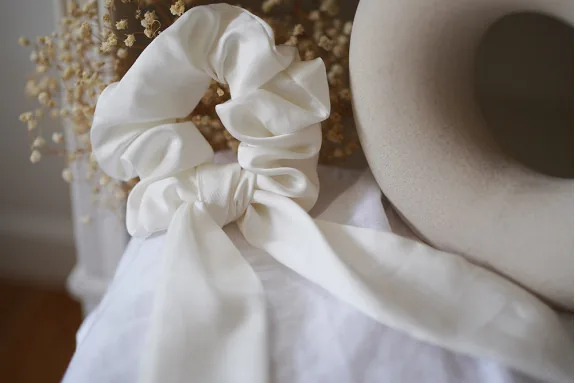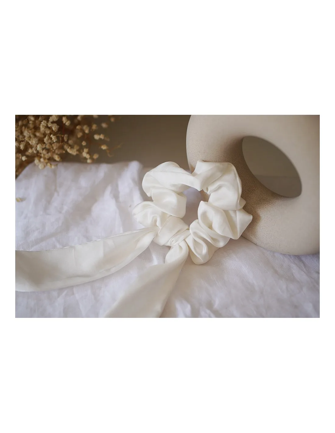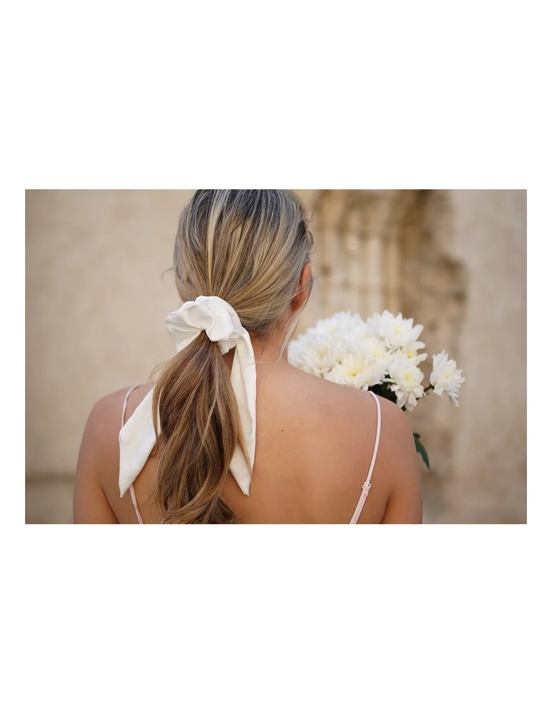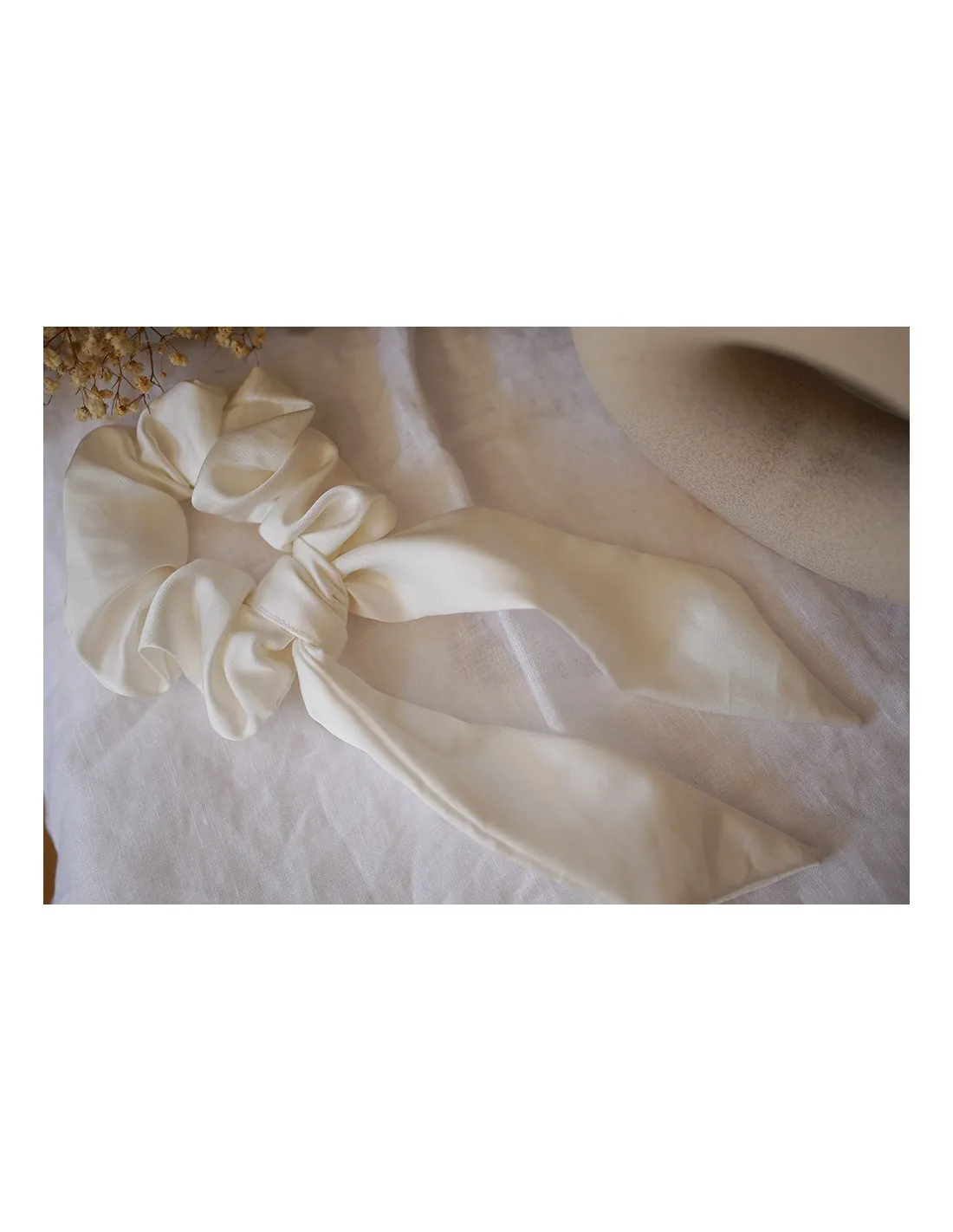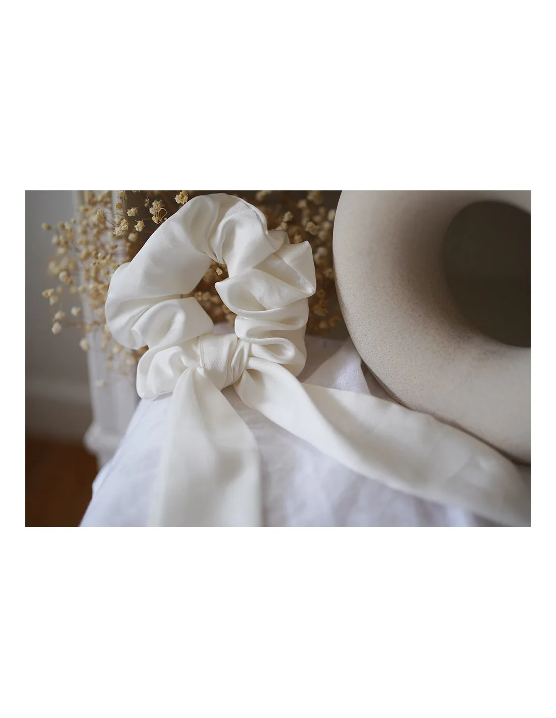 Le chouchou Raphaël satin blanc cassé se décline également en chouchou ruban !