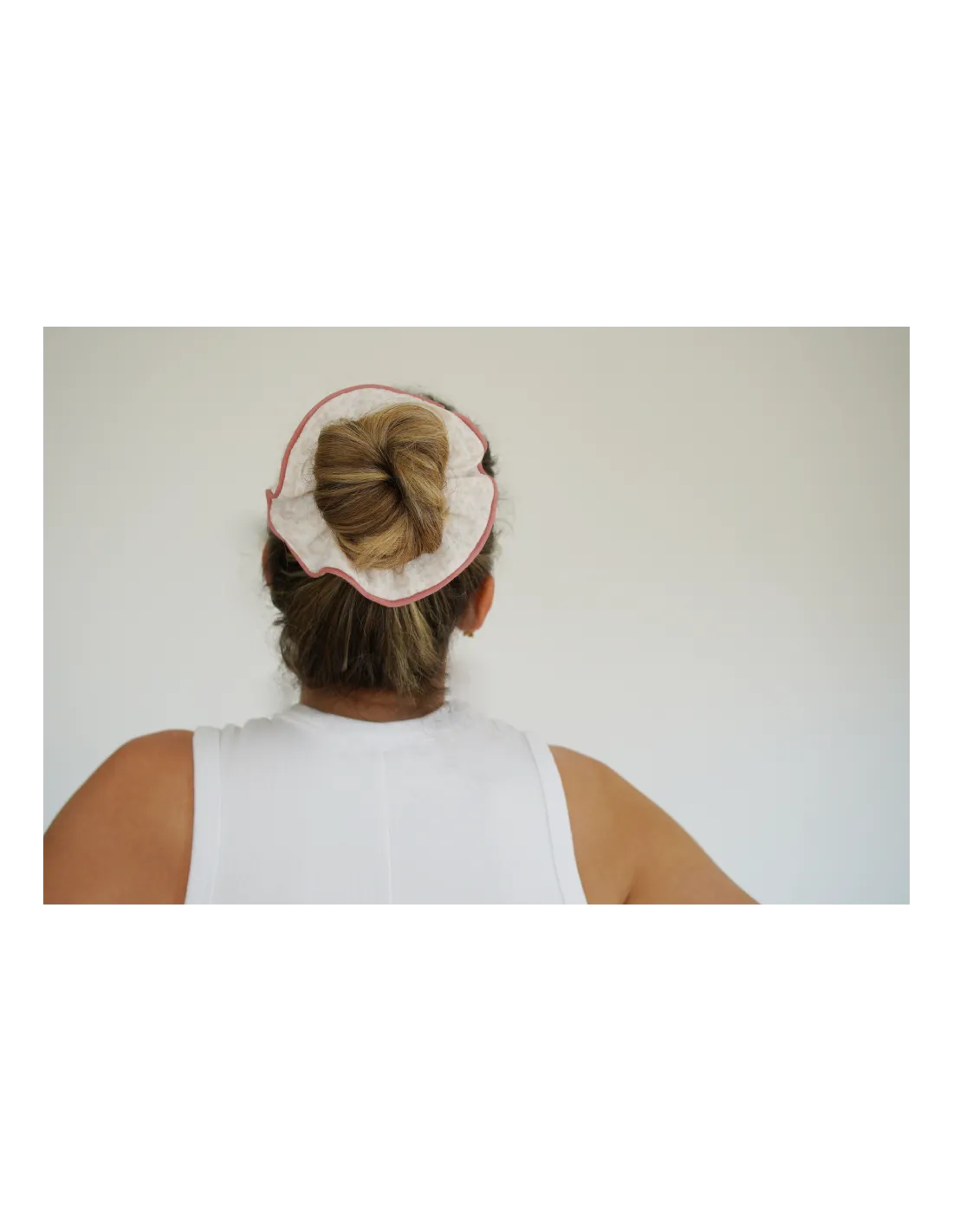 Confectionné dans notre matière fétiche : la double gaze de coton, ce chouchou garantit un confort optimal et respecte vos cheveux tout au long de la journée. Sa texture légèrement gaufrée apporte du volume sans alourdir la coiffure.