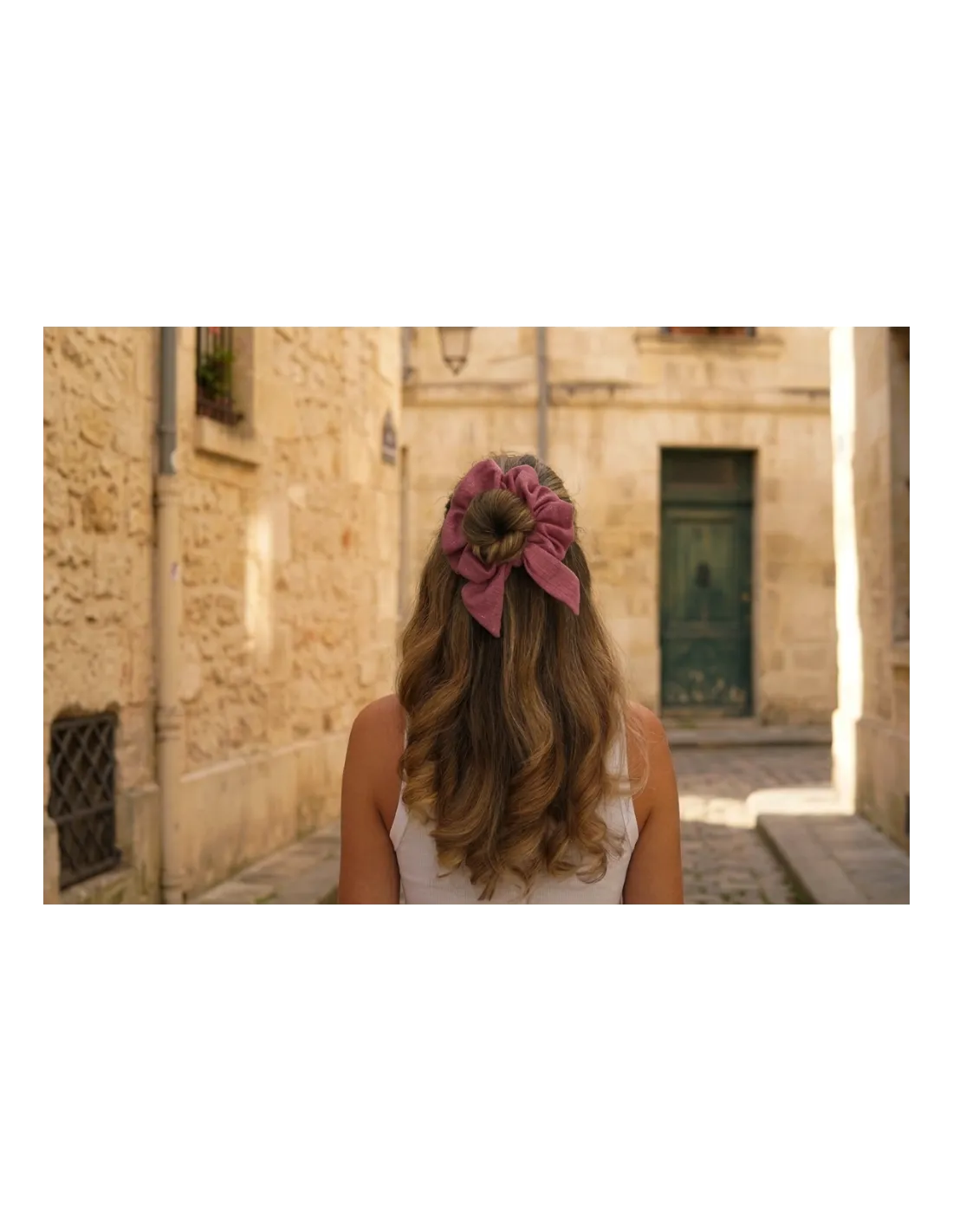 Léger et confortable, le chouchou nœud en gaze de coton respecte les cheveux et se porte toute la journée sans les abîmer.