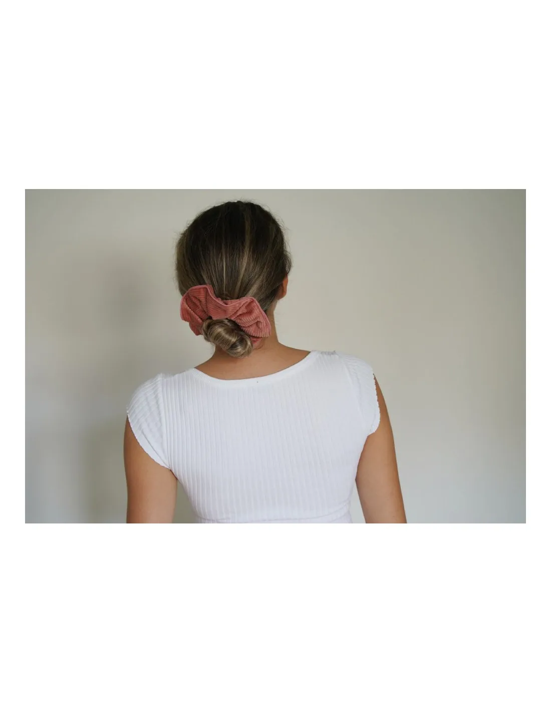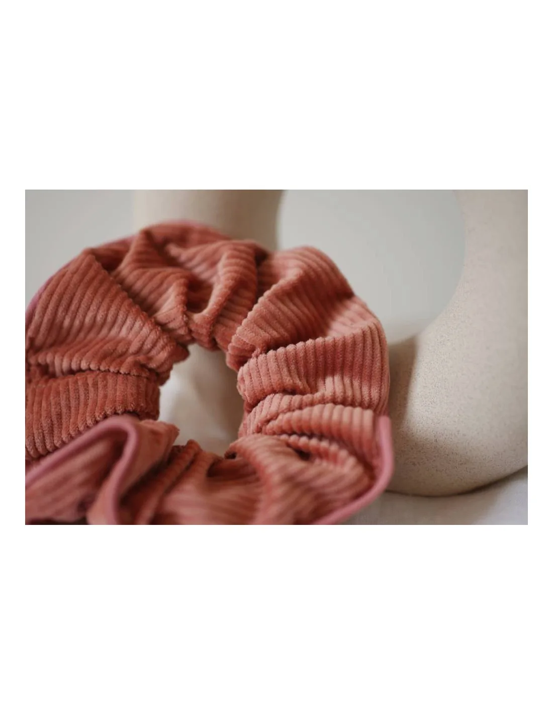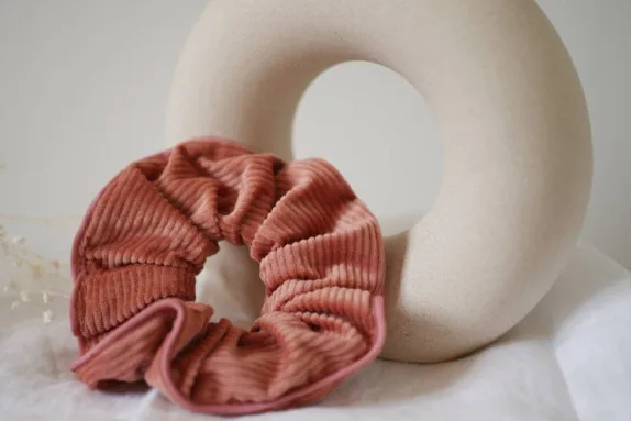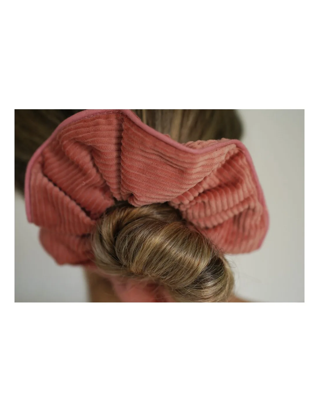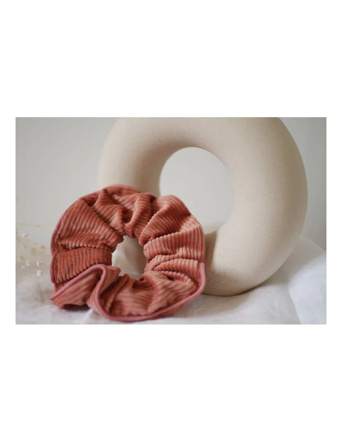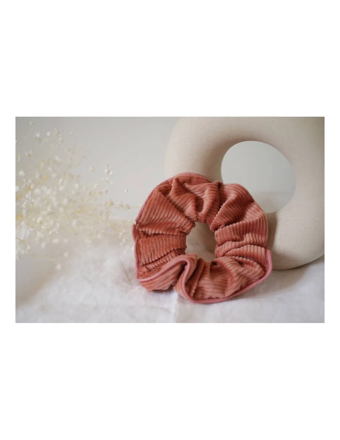 Chouchou en velours côtelé cheveux femme couleur rose argile.