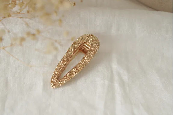 Barrette dorée martelée pour cheveux femmes avec fermoir pince crocodile.
