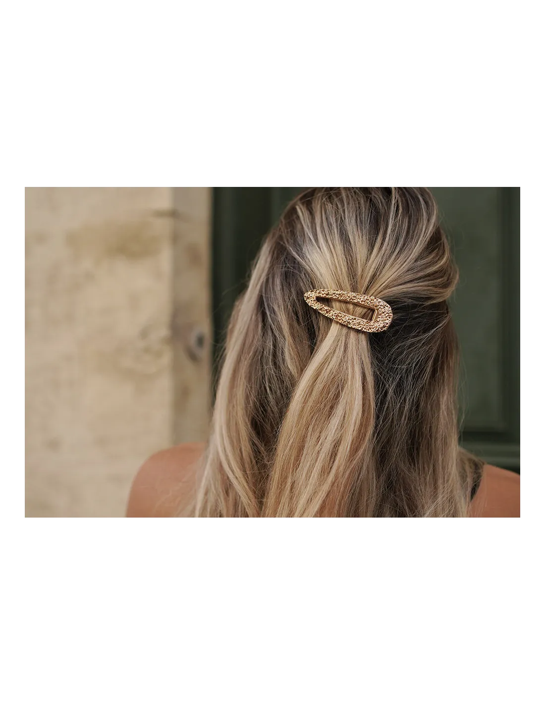 Nous imaginons de nombreux looks lorsque nous pensons à la barrette martelée dorée Ambre !