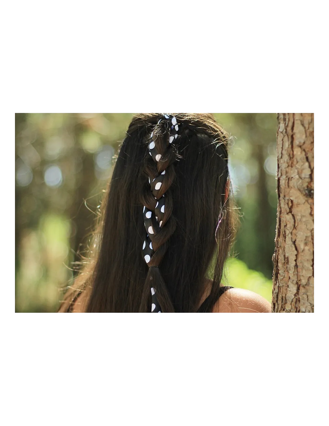 Foulard à nouer pour les cheveux, modèle Paola noir à pois blancs
