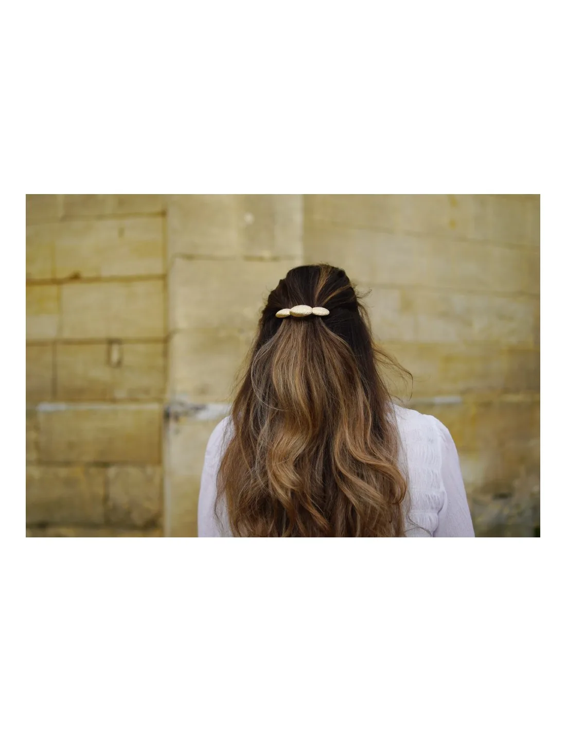 Détails de la barrette Pia, douceur et modernité en version dorée :