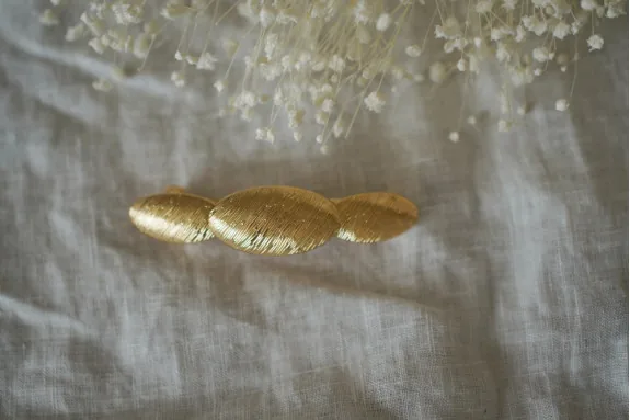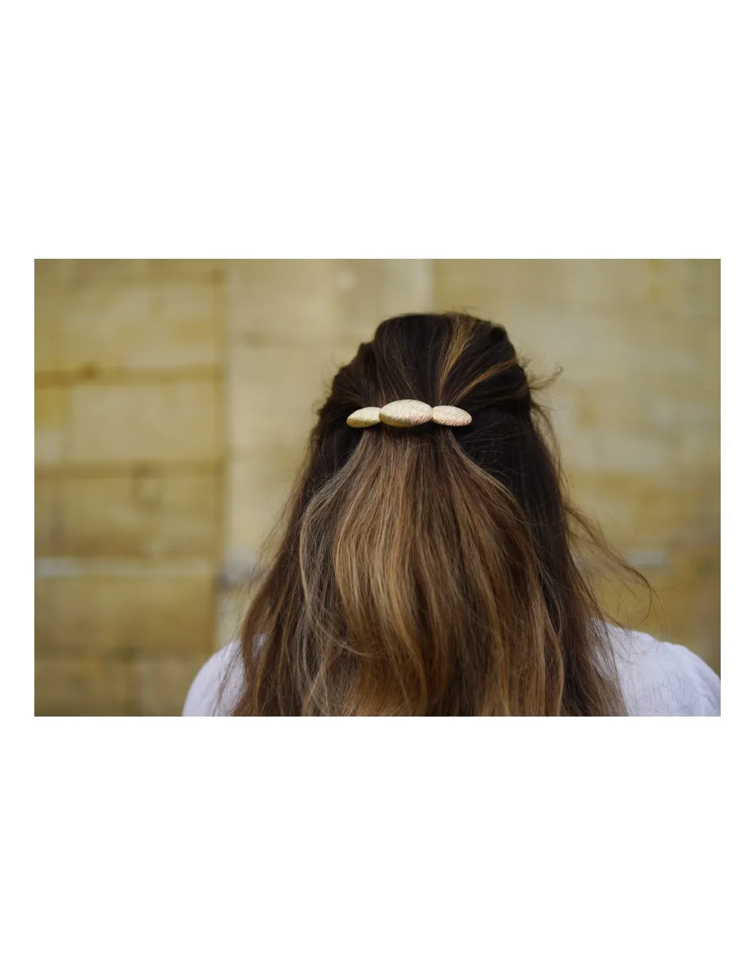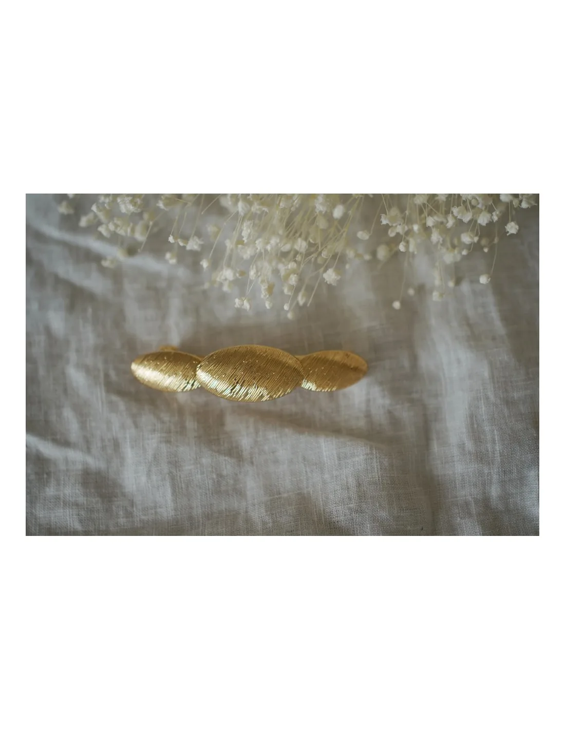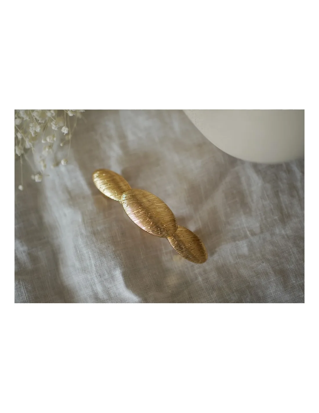 La barrette Pia séduit par sa jolie forme et son aspect strié très moderne.