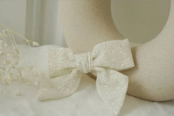 La Barrette Nœud Enfant Pretty Pailleté Blanc est l’accessoire parfait pour compléter une tenue de fête avec élégance et subtilité, tout en assurant confort et maintien aux petites filles.