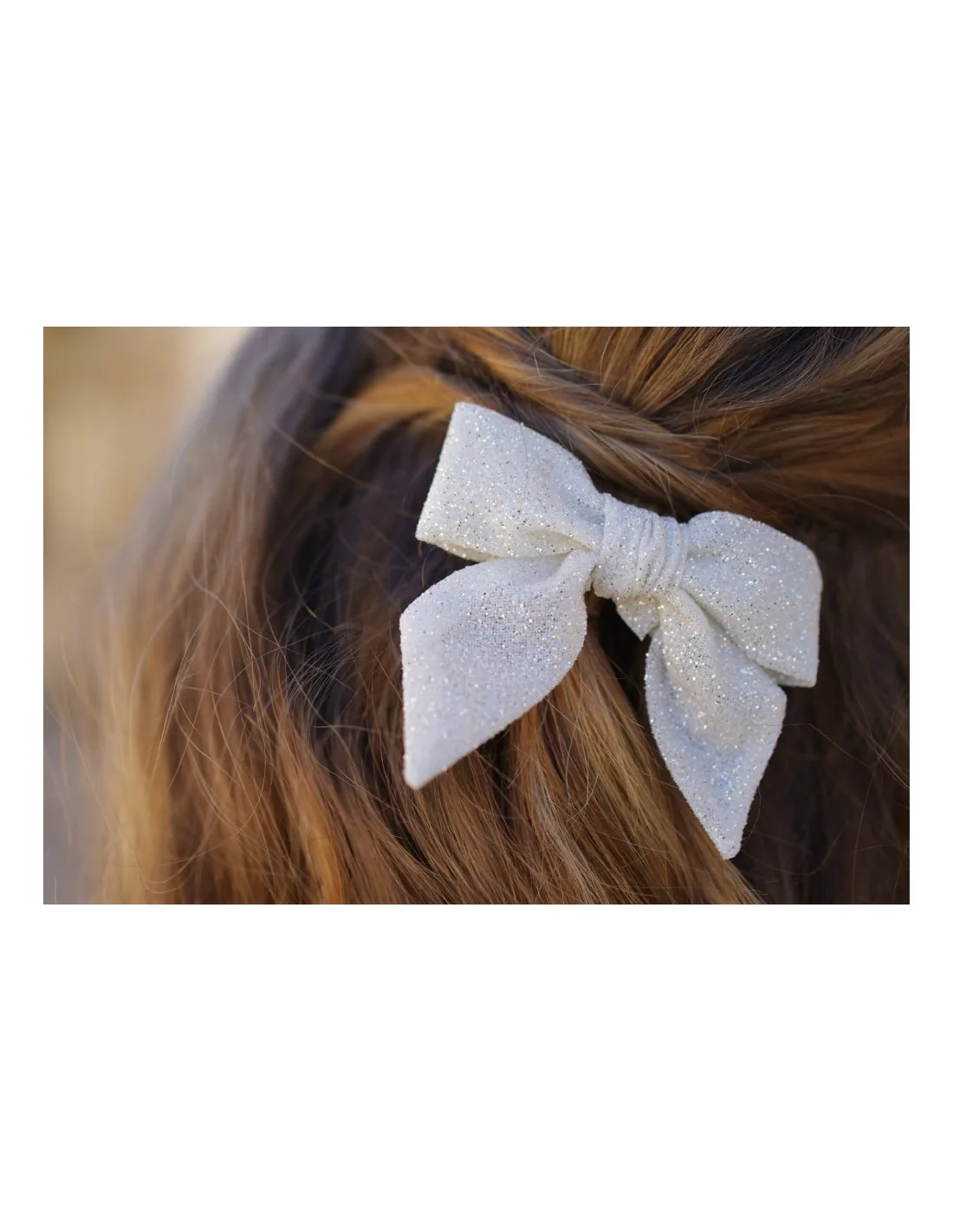 La barrette nœud pailleté enfant est idéale pour sublimer :