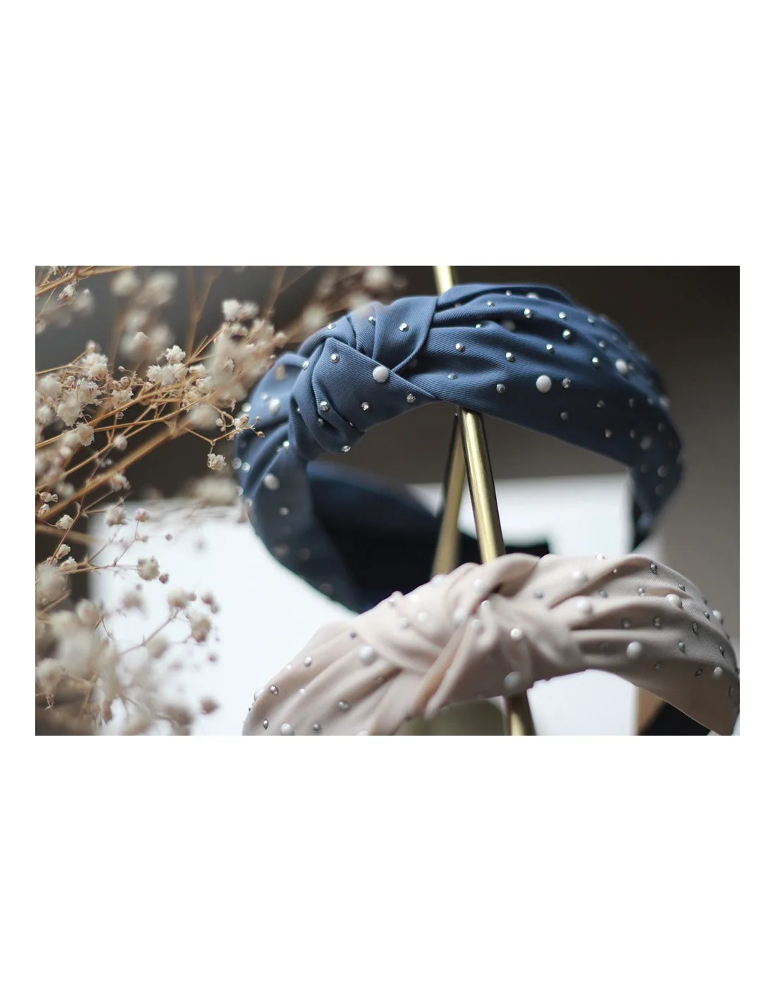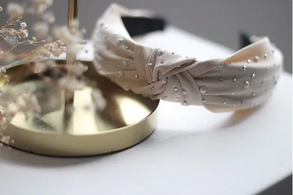 Serre-tête Blair Beige Rosé à perles nacrées