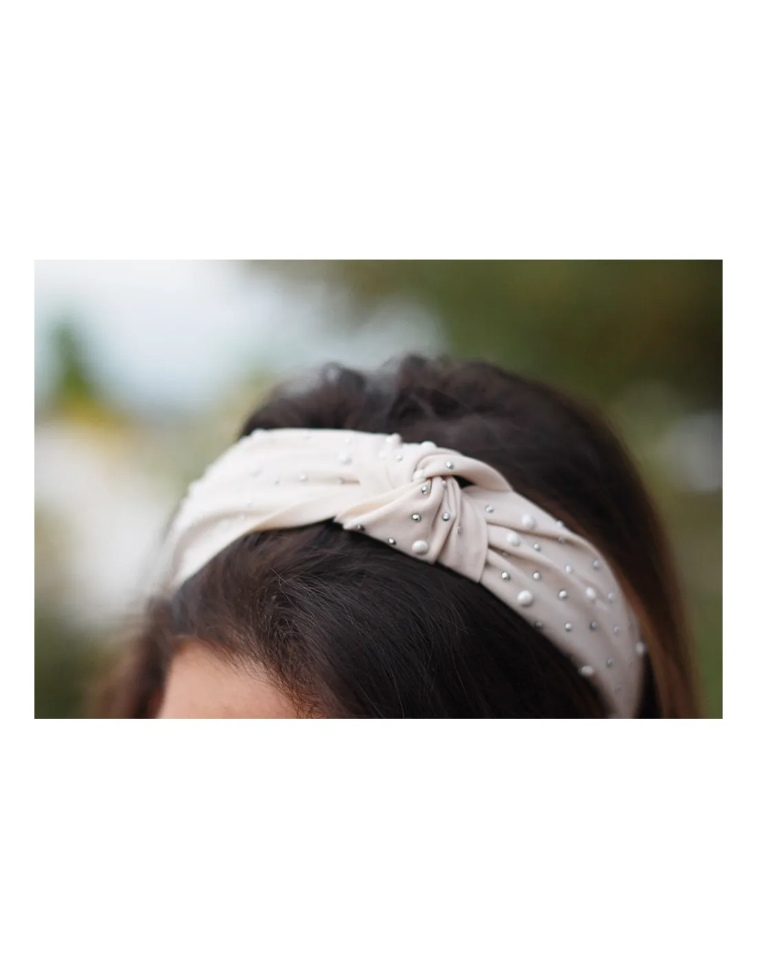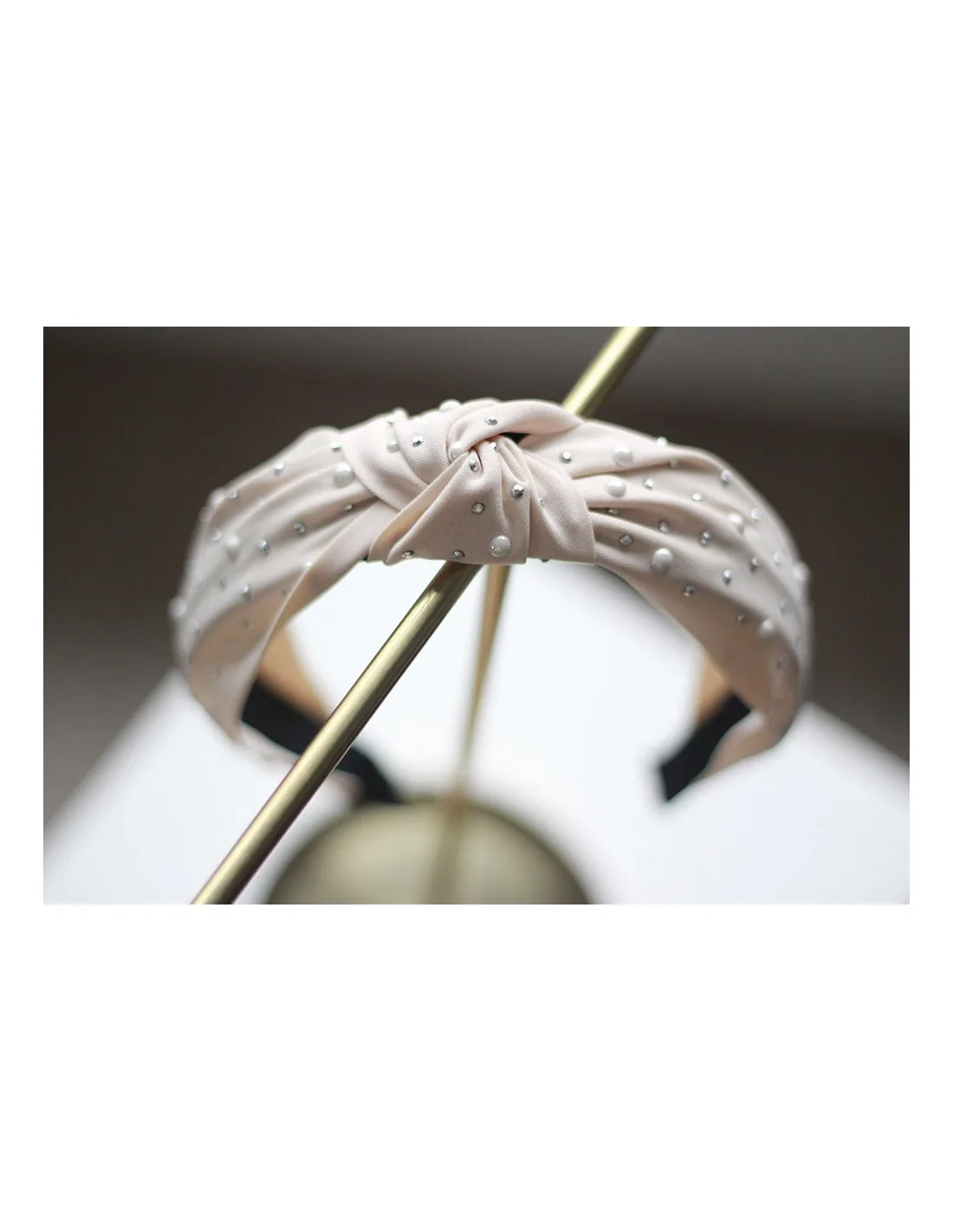 Serre-tête cheveux beige rosé orné de petites perles nacrées.